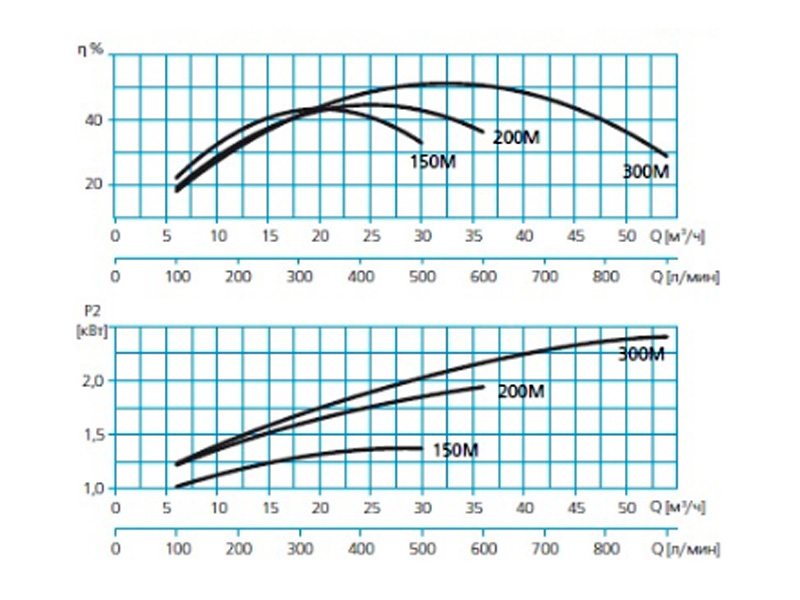 Особая конструкция электродвигателей позволяет им работать как в режиме двухполюсного электродвигателя, так и в режиме четырехполюсного, позволяя насосу выдавать различные гидравлические параметры по желанию потребителя*.