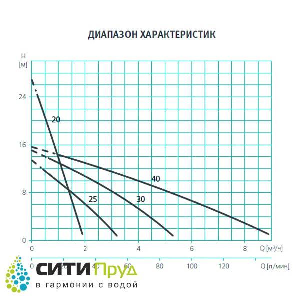 Указанная величина приведена для эксплуатации насоса на высоте при температуре окружающей среды и перекачиваемой жидкости 20°С и при нулевой альтитуде (высоте над уровнем моря). В реальных условиях эксплуатации высота подъема воды насосом может быть меньше.