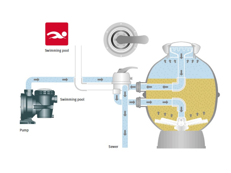 Встроенный частотный преобразователь управляет работой гидравлической части по особым, специально разработанным алгоритмам, в зависимости от текущего положения шестипозиционного крана песчаного фильтра и настроек, выбранных пользователем.