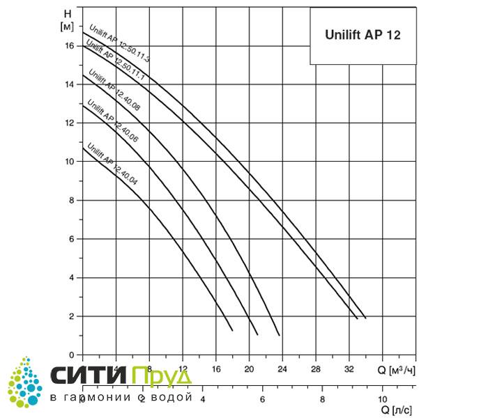 Unilift AP является одноступенчатым насосом с полуоткрытым рабочим колесом (AP12). Все насосы Unilift AP оснащаются муфтой из нержавеющей стали для охлаждения в процессе эксплуатации. Сетчатый фильтр в нижней части препятствует попаданию в насос частиц, превышающих предельно допустимый размер для данного насоса. Сетчатый фильтр крепится к корпусу насоса хомутом. Все насосы Unilift AP могут поставляться с поплавковым выключателем или без него с целью обеспечения автоматического или ручного режима работы.