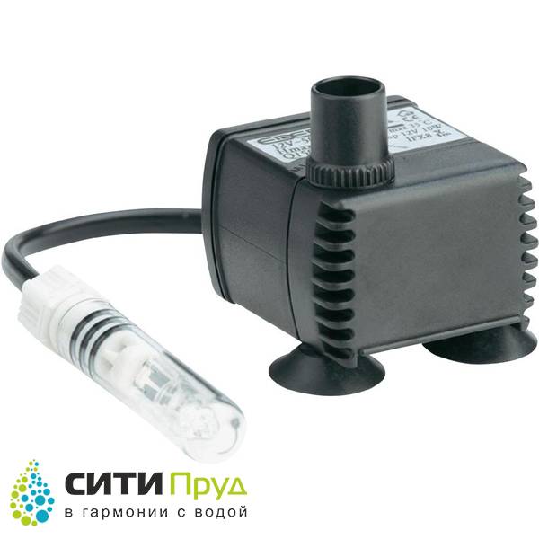 Интерьерный насос с подсветкой подходит для использования в небольших комнатных фонтанах. Имеет очень компактный размер с регулятором производительности.В комплект входит небольшая компактная подсветка для фонтана и устанавливается внутри фонтана. Необходимое отверстие для подсветки  13 мм.