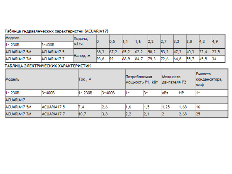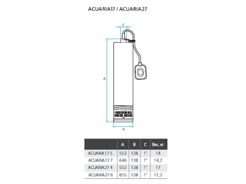 Диаметр скважин должен составлять не менее 5" для насосов модельного ряда ACUARIA07 и не менее 6" для насосов модельных рядов ACUARIA17, ACUARIA27, ACUARIA37, ACUARIA57.