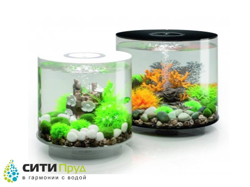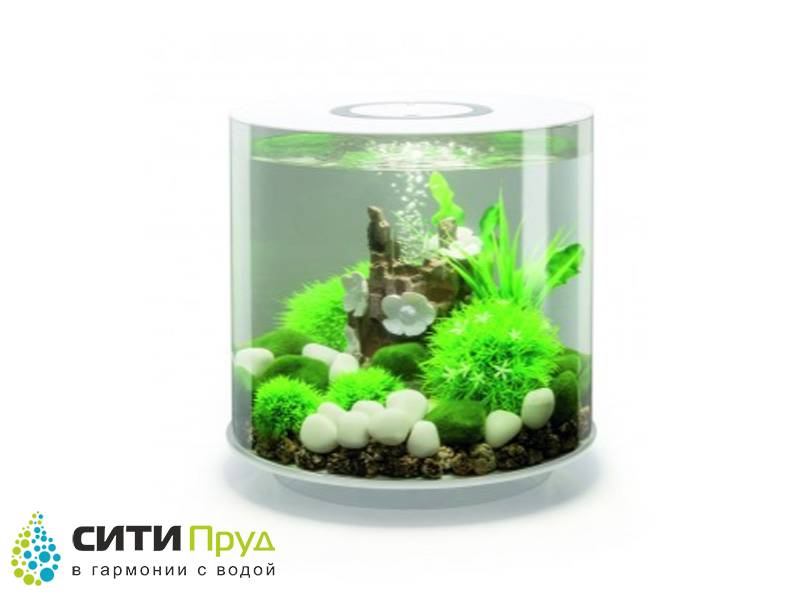 • Круглый аквариум с обзором в 360° и встроенной светодиодной подсветкой