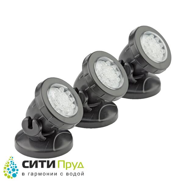 Комплект светильников используется как под водой, так и выше уровня воды. Имеет компактные размеры благодаря , которым его использование расширяет возможности. В продаже доступны две комплектации: один или три светильника в комплекте с трансформатором.