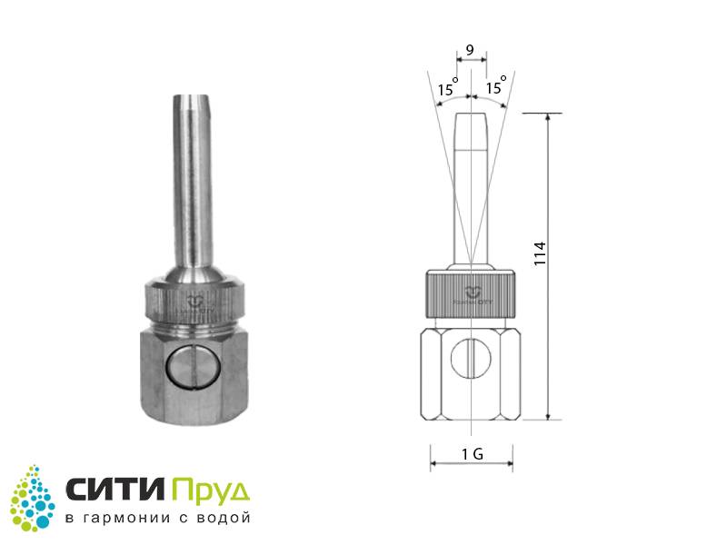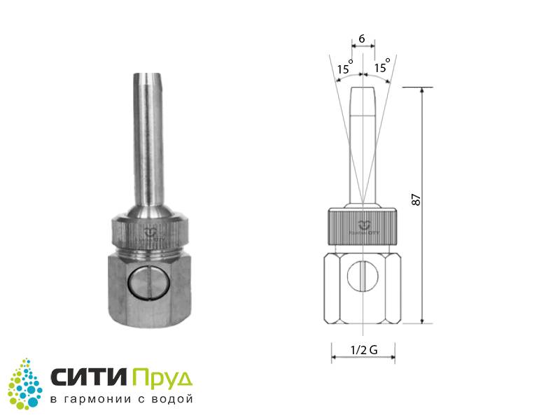 Для применения в составе различных водных распределителей, наиболее часто используются диаметры сопла : 6, 7 и 9 мм.