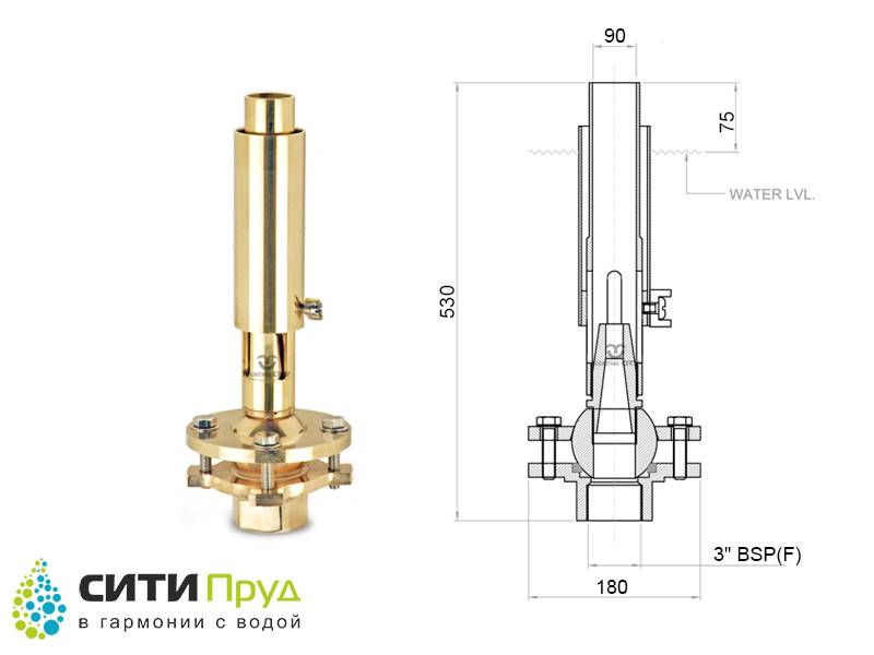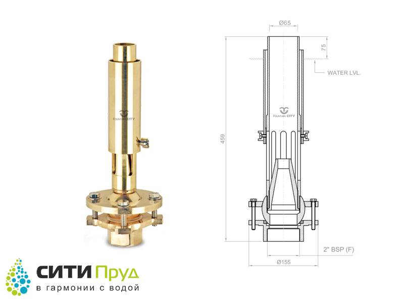 Насадка "Aerating Jets"- уровнезависимая, поэтому при проектировании и монтаже необходимо учитывать ее конструктивные особенности и обеспечивать постоянный заданный уровень воды в чаше фонтана.