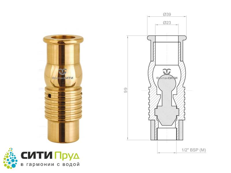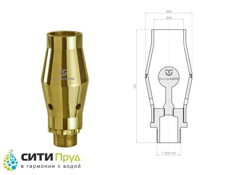Данная насадка предназначена для создания плотной и насыщенной пузырьками воздуха струи воды. Подобный эффект создается за счет уникального способа подсоса воздуха и насыщения водного потока кислородом. Для применения в составе различных водных распределителей, наиболее часто используются насадки с диаметром сопла от 23 до 75 мм.