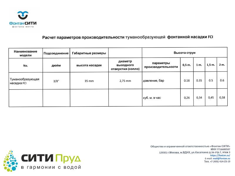 Туманообразующая насадка FCI служит для создания декоративной дымки над поверхностью фонтана. Чаще всего применяется в качестве дополнительного эффекта в сочетании с более мощными насадками, например: пенный исток, гейзер или каскад.