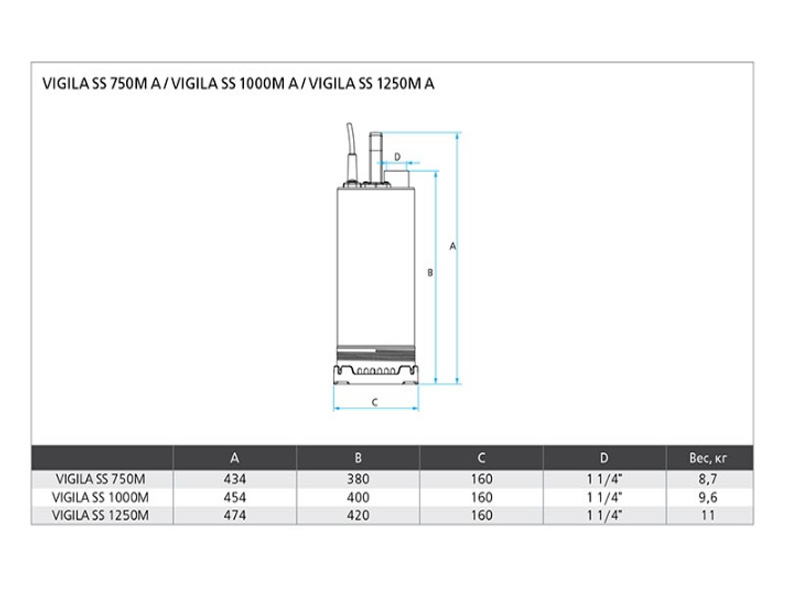 Погружной дренажный насос "ESPА"VIGILA SS 1250M (230V, 16,2 куб.м/ч, 3,1 м)
