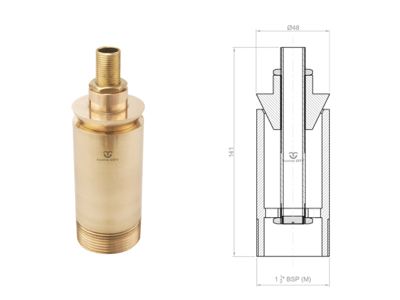 Данная насадка монтируется на вертикальный закладной элемент (опорная стойка фонтанной насадки) из нержавеющей стали. Конструкция насадки не имеет предустановленного регулируемого шарнирного соединения в связи с чем, необходимо требовательно подходить к качеству монтажа закладных изделий.