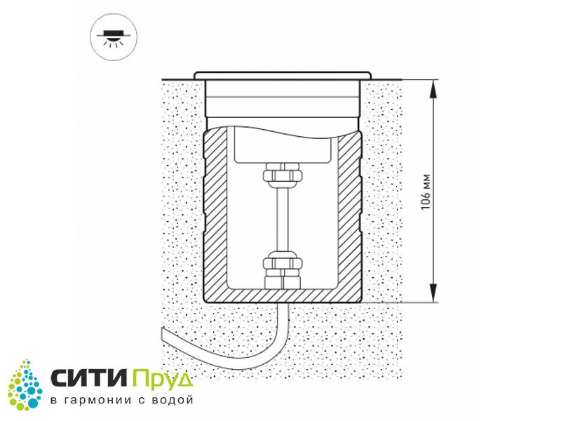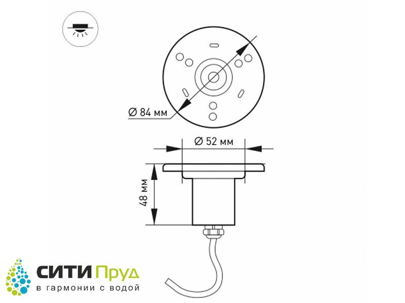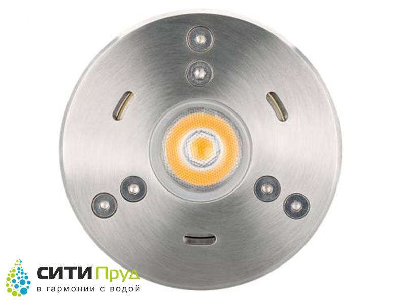 Подводный светодиодный светильник, мощность 7Вт, угол освещения 25°. Световой поток: Теплый белый 3000К, Холодный белый 6000К - 560-600лм, CRI>80. Влагозащищенный корпус IP68 - серебристая нержавеющая сталь, экран из закаленного стекла. Мощность 7Вт. Размеры DxH ?84х95мм. Установка в отверстие DxH ?74х106мм В комплекте 5м провод.