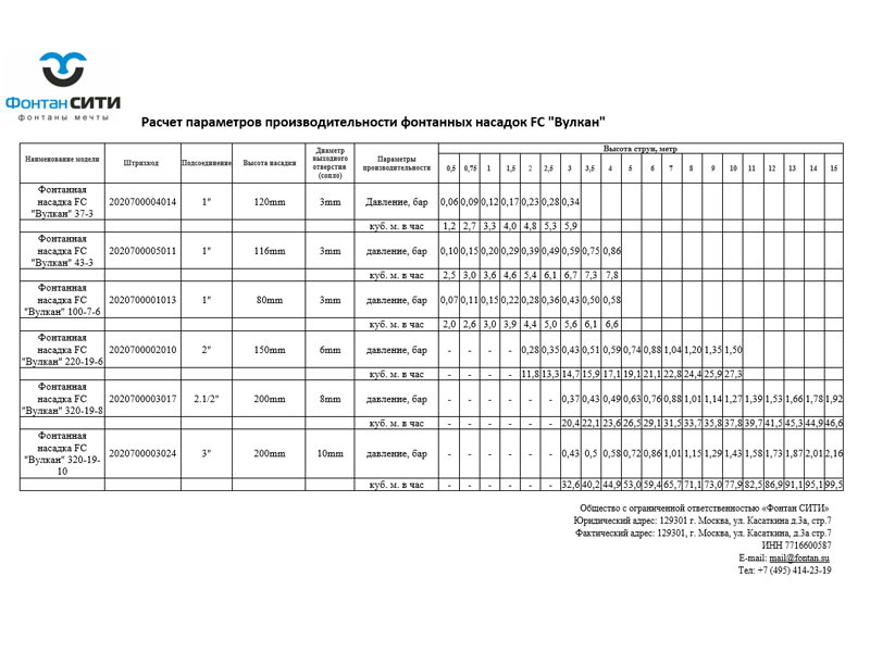 Фонтанная насадка FC "Вулкан" производится на металлообрабатывающем предприятии компании Фонтан СИТИ на территории России.