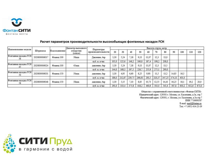 Насадка предназначена для формирования максимальной высоты водной струи. Это обеспечивается созданием специальной конструкции насадок на этапе производства. Для обеспечения максимальной производительности высокобьющих насадок, необходимо обеспечить соответствующую мощность насосного оборудования.