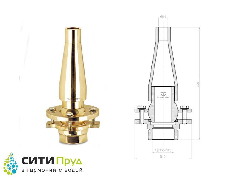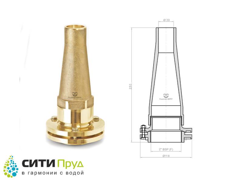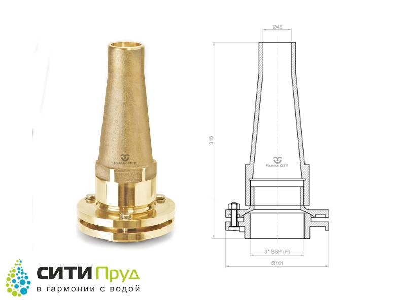 Насадка предназначена для формирования максимальной высоты водной струи. Это обеспечивается созданием специальной конструкции насадок на этапе производства. Для обеспечения максимальной производительности Высокобьющих насадок, необходимо обеспечить соответствующую мощность насосного оборудования.