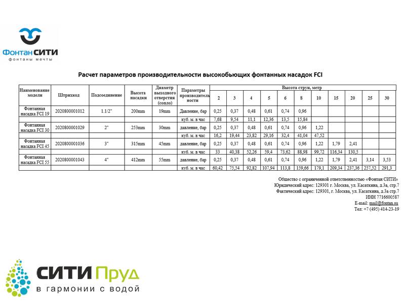 Высокобьющая фонтанная насадка FCI